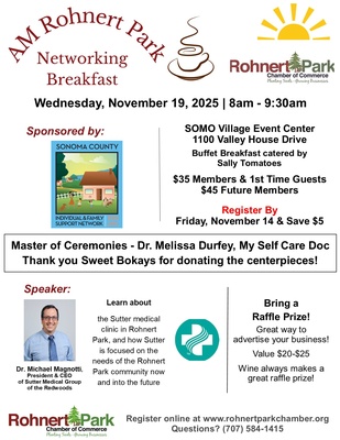 Join us for our November AM Rohnert Park Networking Breakfast sponsored by Individual & Family Support Network